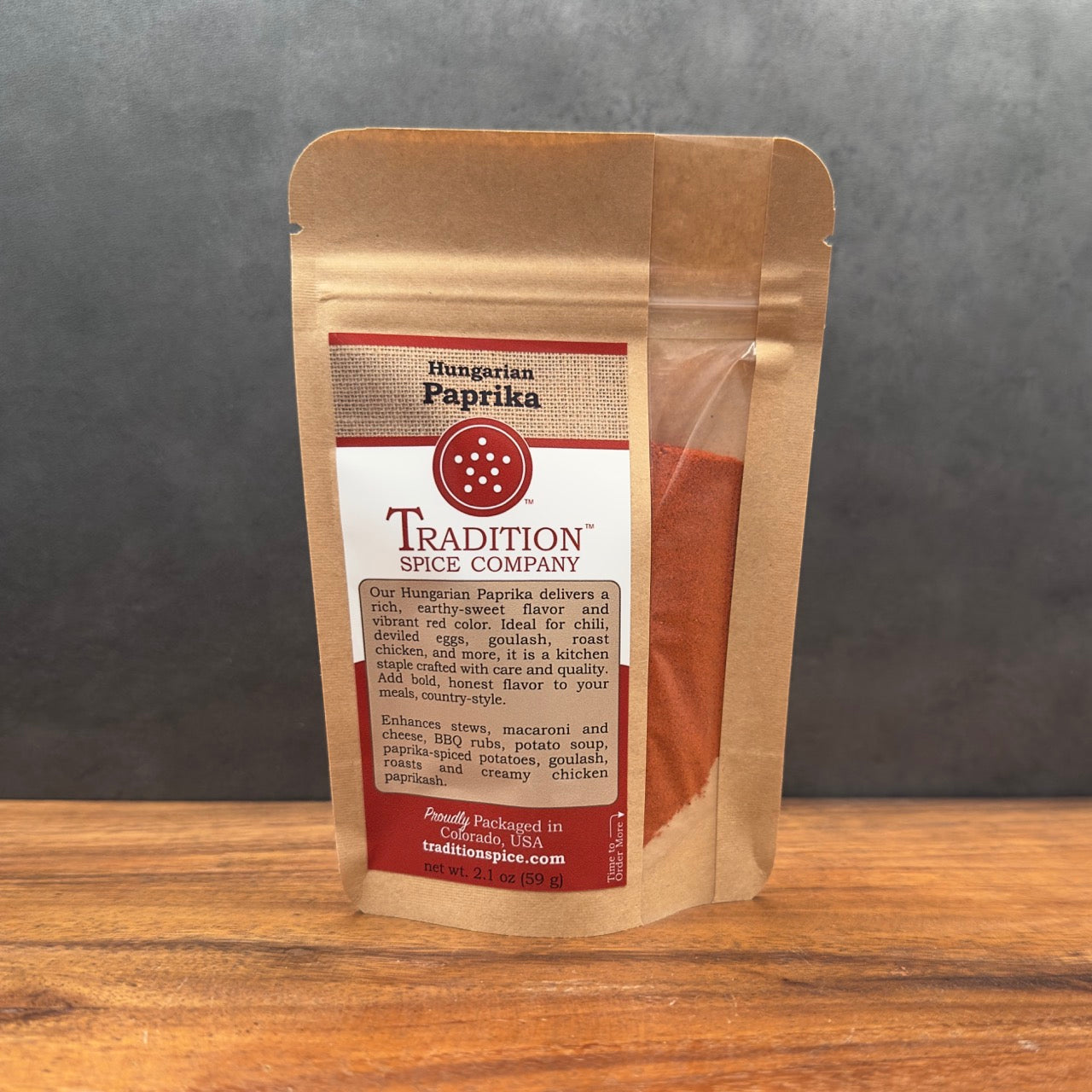We don’t cut corners 'round here. Every jar of Tradition Spice Company’s Hungarian Paprika is packed with our company’s promise of quality— processed gently and sealed fresh to keep the flavor strong and the color bold. Because when it comes to good food, we reckon you deserve the real thing: herbs and spices grown with care and served with soul.